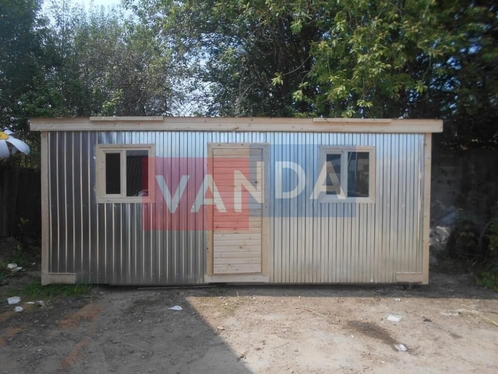 Существует и металлический вариант строительных бытовок, их еще называют блок-контейнерами. Как и деревянные аналоги, они имеют раму, только металлическую. Стены их состоят из сэндвич - панелей или профильных листов. Крыша оцинкована, помещение так же имеет утеплитель, звукоизоляцию, для этой цели предусмотрен небольшой зазор между крышей и основным потолком.